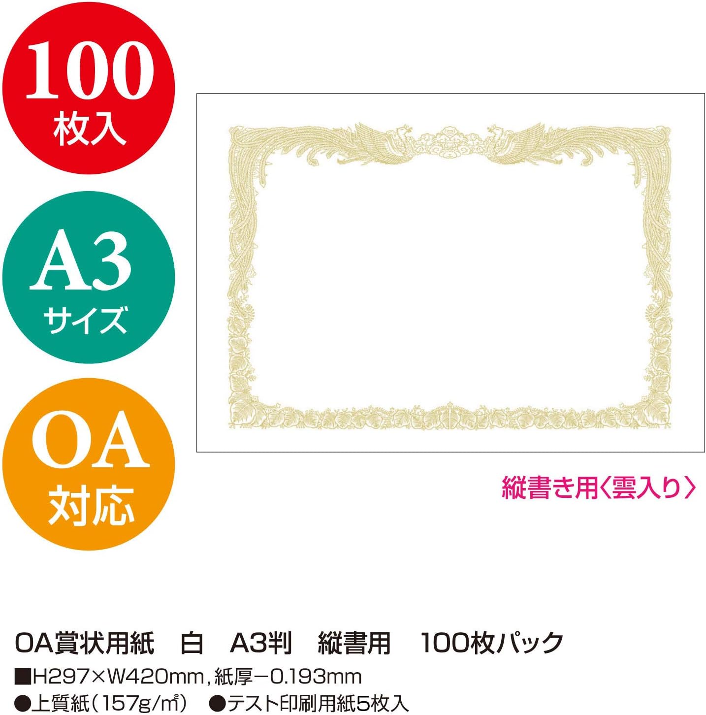 賞状紙W 縦書 A3ヨコ 10-1180 百