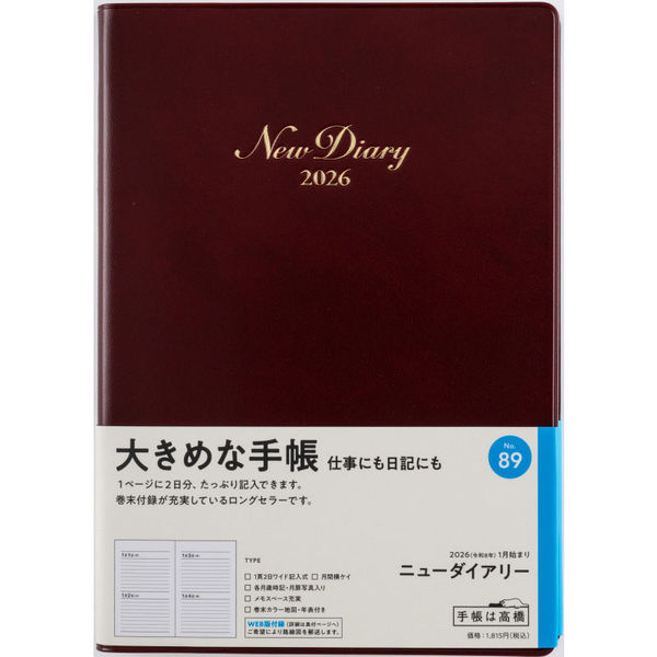 ニューダイアリー 89 A5赤 1頁2日ワイド