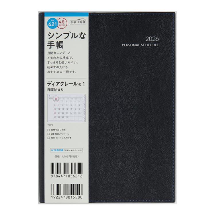手帳 ディアクレール1 621 B6黒4月始