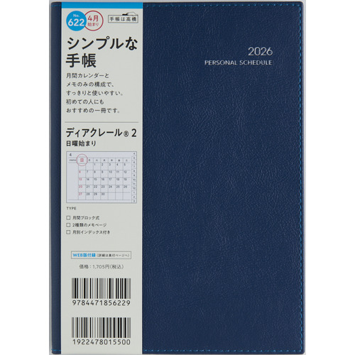 手帳 ディアクレール2 622 B6紺4月始