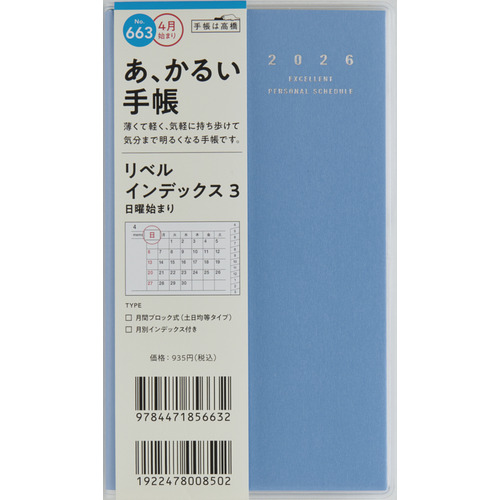 手帳 663 リベルI3 日曜始空4月始
