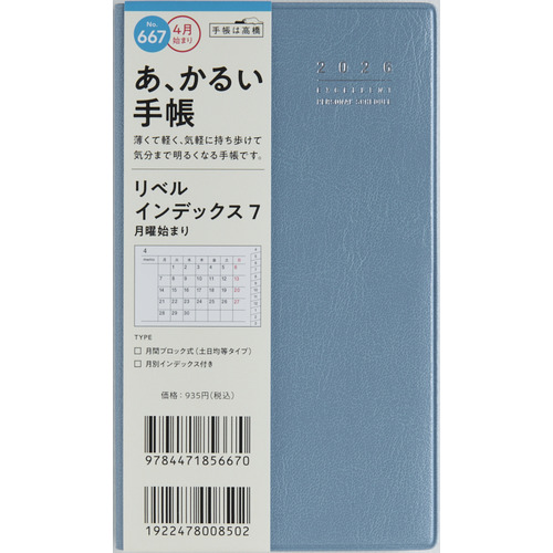 手帳 667 リベルI7 月曜始紺4月始