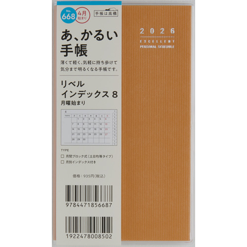 手帳 668 リベルI8 月曜始橙4月始